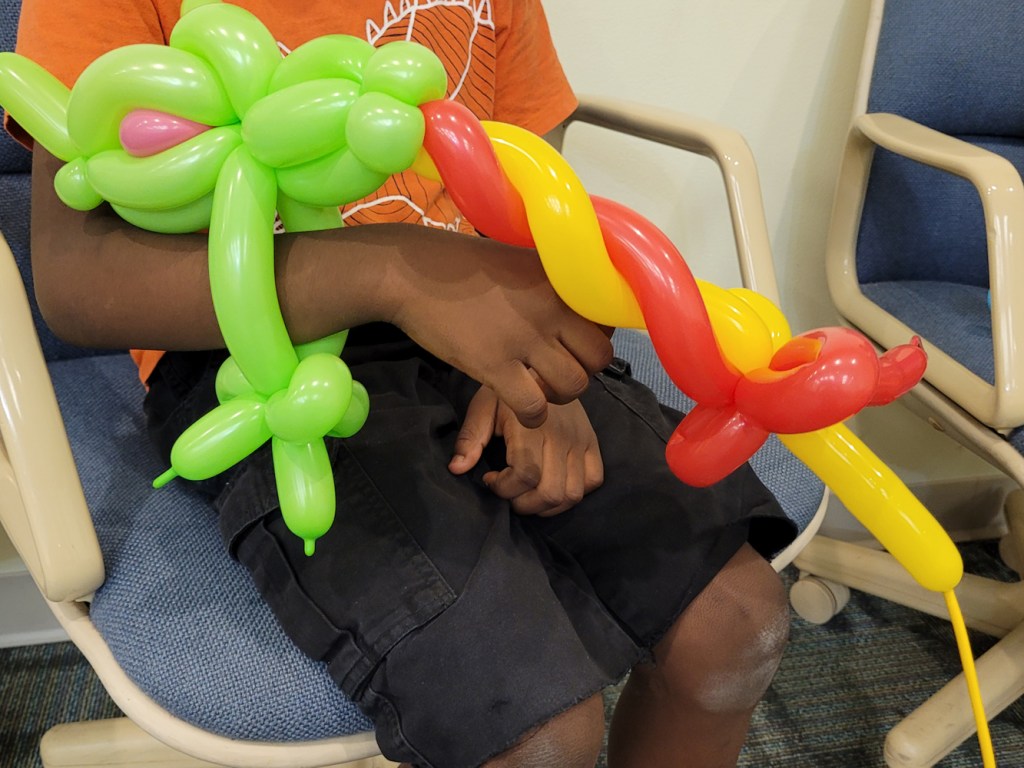 No one left empty-handed, as all the children received a piece of balloon art, whether it was one of the aforementioned pieces or their choice of a sword or poodle. Those who received a sword immediately engaged in spirited swordplay with their siblings or parents. A good time was had by all!